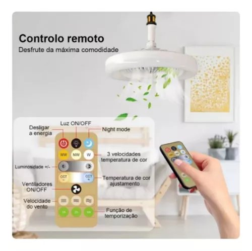 Multifuncional dise o 2 en 1 no solo es una luz LED con faro E27 sino que tambi n se puede utilizar como ventilador con mando a distancia amplio voltaje AC universal de 86 a 265 V Y ajustable di metro 10 23 pulgadas altura 4 72 pulgadas luz blanca integrada de 30 W 2800 a 6500 K luz c lida ajustable viento suave bajo nivel de ruido tres marchas ajustables 3 modos de funcionamiento la fuente de alimentaci n se conmuta cambia la fuente de alimentaci n Una vez que cambie el modo de trabajo hay 3 modos de trabajo 1 luz encendida 2 ventiladores encendidos 3 ventiladores luz funcionando F cil instalaci n para la instalaci n basta con atornillar cualquierportal mparas e27 sin cableado sin necesidad de un electricista profesional instalaci n r pida y eficienteDisfruta de un refresco en verano las 3 aspas del ventilador integrados son perfectas para dormitorios y guarder as tambi n se pueden utilizar en salas de estar oficinas dormitorios cocinas oficinas etc para mantenerte fresco en el calor del verano Potencia de la luz 30 W Potencia del ventilador 4 W Voltaje 86 V 265 V AC Color de la luz 2800 K 6500 K blanco fr o c lido Luz ajustable 2400 lmDuraci n de la l mpara 50 000 horas Aspas del ventilador 3 aspas Color blanco y amarillo Material pl stico Tama o 26 x 12 cm 10 23 x4 72Contenido del paquete 1 l mpara LED para ventilador 1 mando a distancia Garant a Cuenta con 10 d as de garant a por defectos de f brica nicamente da os ocasionados por terceros no cubre garant a si el pedido llega roto o incompleto reportar como m ximo 10 d as si se reportan a los d as despu s se asumir como da o por terceros y si la orden est trocada o confundida se le har el respectivo cambio Nota Para devoluciones o garant a tener en cuenta que el paquete se debe enviar con buen embalaje igual o mejor como les llega el producto inicialmente