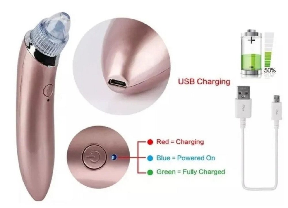 Incluye: 1 Máquina de vacío, 1 Cable USB, 6 Esponjas, 4 Cabezales intercambiables para diferentes áreas de tratamiento, y luz LED para facilitar el uso en diferentes condiciones de iluminación.